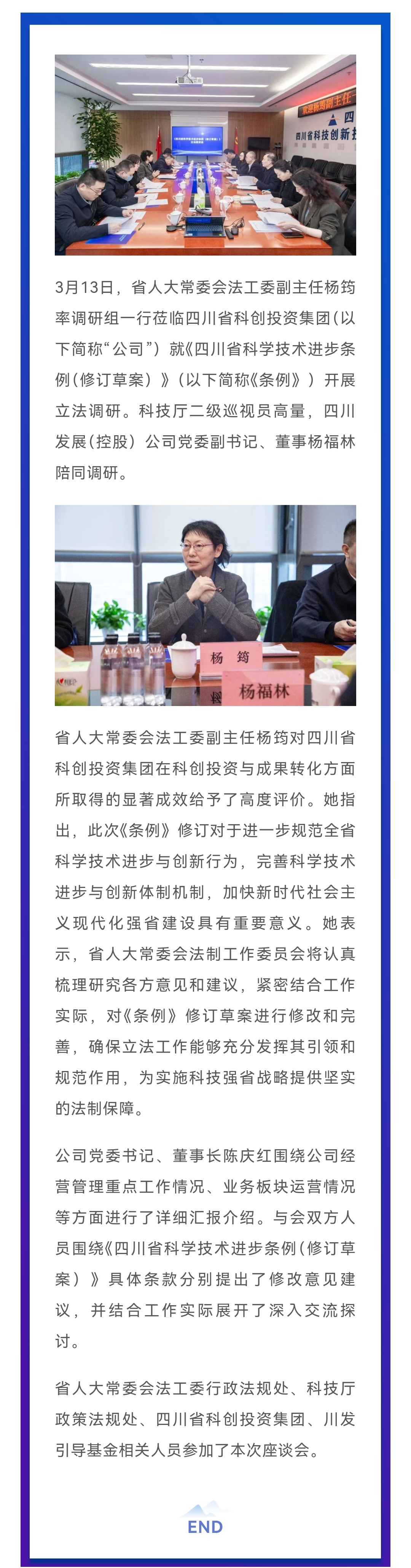 公司新聞丨省人大常委會法工委副主任楊筠一行蒞臨四川省科創(chuàng)投資集團開展立法調研