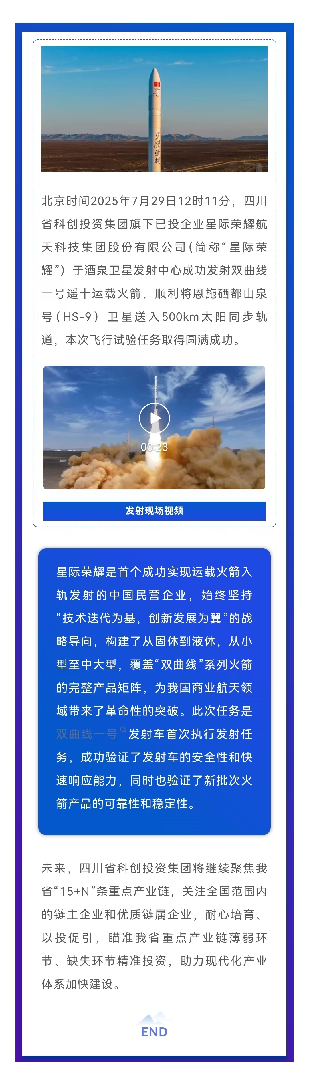 已投企業動態 | 星際榮耀雙曲線一號遙十運載火箭發射成功
