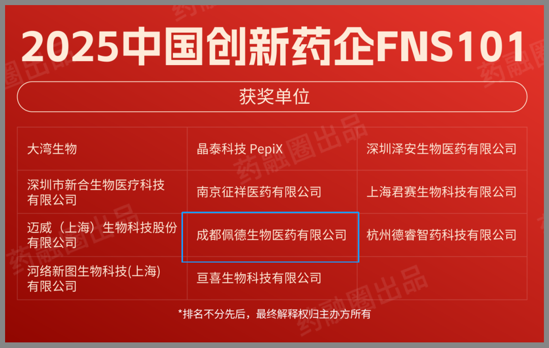 已投企業動態 | 佩德生物榮獲2025中國創新藥企FNS101榜單“年度Biotech先鋒獎”